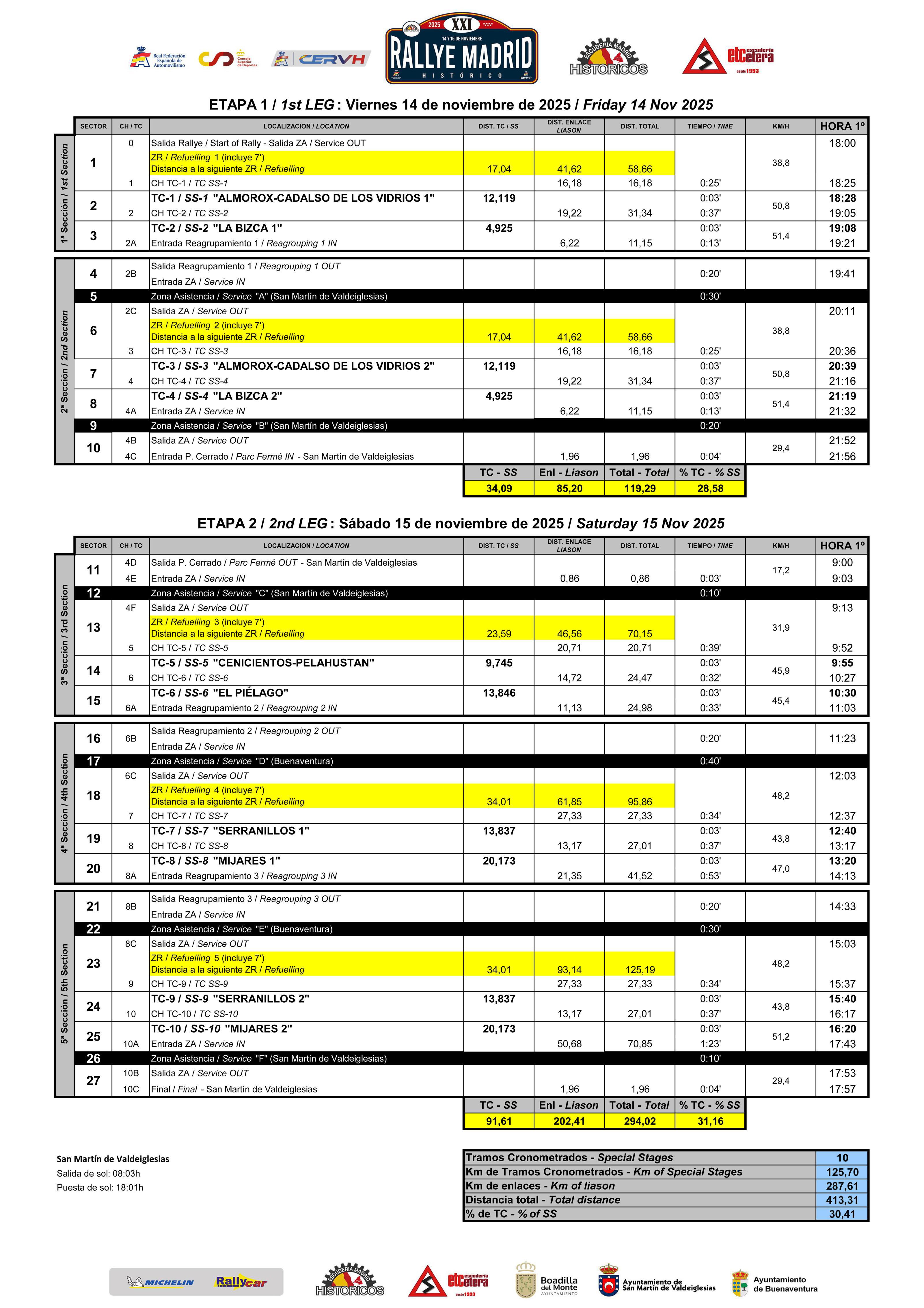 Itinerario-Horario del rallye Madrid Histórico